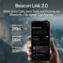 Make voice calls, send texts and pictures via Bluetooth—no network needed. No signal? Call anyway. 210m in parking lots 120m on mountains 30m at concerts