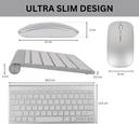Elevate your workspace with this Wireless Keyboard and Mouse Combo, designed for seamless performance, versatility, and style. Compatible with Mac, Windows,IOS and Android devices, this set allows effortless multi-device connectivity 2.4GHz USB Nano Receiver, supporting up to three devices at once. The slim, lightweight keyboard features a sleek silver body and white keys for a modern, minimalistic look, while the high-precision optical mouse offers adjustable 800 / 1200 / 1600 DPI for smooth and accurate tracking on multiple surfaces, including glass and fabric. Enjoy silent typing and clicking for distraction-free work, along with long-lasting durability—10 million keystroke and click lifespan. With auto power-off to save battery, ergonomic design, and travel-friendly portability, this combo is perfect for professionals, students, and anyone seeking a reliable, stylish, and efficient wireless keyboard and mouse solution for home, office, or on-the-go use.