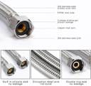 Say Goodbye to Leaky Headaches, Hello to Sleek & Reliable Plumbing Bid farewell to frustrating leaks and unreliable connections with the Stainless Braided Connection Pipe. This premium upgrade takes your plumbing system to the next level, offering unmatched durability, leak-proof performance, and a touch of modern style. Built to Last, Guaranteed: Rust-Proof Champion: 304-grade stainless steel construction stands strong against rust and corrosion, ensuring peace of mind in even the most demanding wet environments. Say goodbye to flaking chrome and rusty pipes! Leak-Proof Perfection: Precision-engineered connectors and a tightly braided stainless steel exterior create an impenetrable seal, eliminating the worry of drips and potential water damage. Sleep soundly knowing your connections are secure. Flexi-Power: The flexible braided design bends and maneuvers effortlessly, making installation a breeze even in tight spaces. No more wrestling with rigid pipes! Performance You Can Trust: Pressure Powerhouse: Built to handle even the most demanding water flow, this pipe boasts a high pressure rating, so you can blast dishes, shower with confidence, and power through laundry without a flinch. Versatile Hero: From faucets and geysers to washing machines and dishwashers, this pipe tackles any connection task with ease. One solution for all your plumbing needs! Modern Makeover: The sleek, brushed-steel finish adds a touch of sophistication to your kitchen, bathroom, or laundry room, elevating the overall look of your space. Style meets function beautifully. Find Your Perfect Fit: Lengthy Options: Available in various lengths to match your specific project needs, eliminating frustrating "just-slightly-too-short" scenarios. Size Savvy: Choose from a range of connection sizes to perfectly match your existing plumbing fixtures. No adapters needed! Invest in the future of your plumbing with the Stainless Braided Connection Pipe. Experience the freedom of