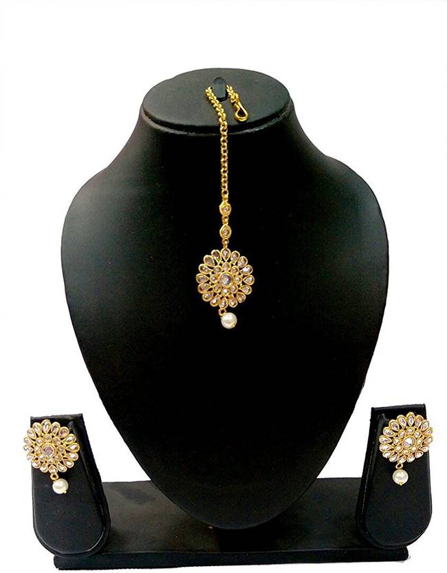 CRYSTAL EARRINGS WITH MAANG TIKA SET Crystal Brass Stud Earring