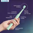 Your dental regimen will look stylish, thanks to the Oracura brush's sleek and fashionable design. It is a battery operated toothbrush that works according to your convenience and is very simple to operate, by both adults and children. Kids, who frequently avoid their daily brushing regimen, benefit greatly from the interactive and effective brush routine with an electric brush. To select from the toothbrush's many speed settings and to switch between the sensitive, clean, and massage modes, simply push the circular button on the front of the device.