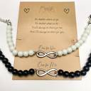 The Adjustable Silver Infinity Couple Bracelet is a timeless and elegant piece of jewelry that symbolizes everlasting love and connection between partners. Crafted from high-quality sterling silver, this bracelet features a delicate infinity symbol, which represents infinite love, eternity, and empowerment. The symbol is expertly crafted with intricate detailing, showcasing the skill and craftsmanship of the artisans. What sets this bracelet apart is its adjustable design, allowing it to fit wrists of various sizes comfortably. The adjustable feature ensures a perfect fit for both partners, making it an ideal gift for couples. The bracelet is not only a symbol of love but also a stylish accessory that can complement any outfit, whether casual or formal. The silver used in the bracelet is durable and resistant to tarnishing, ensuring that it retains its beauty for years to come. The smooth and polished surface adds a touch of sophistication, making it a versatile piece suitable for everyday wear or special occasions. Whether you're celebrating a milestone in your relationship or simply expressing your love, the Adjustable Silver Infinity Couple Bracelet is a meaningful and heartfelt gift choice. Its design embodies the idea of eternal love, making it a cherished token of affection for couples deeply committed to one another.