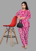 CABT Beyod the expectations -This printed night suit combines with style, offering a perfect blend of cozy fabric and eye-catching designs. Ideal for a restful night’s sleep or lounging around at home, this night suit is a must-have addition to your wardrobe.The night suit features an array of printed patterns, ranging from playful and whimsical to elegant and sophisticated. Whether you prefer florals, geometric shapes, animal prints, or abstract art, there's a design to match every taste and personality. The prints are vibrant and resistant to fading, ensuring the night suit looks new even after multiple washes.