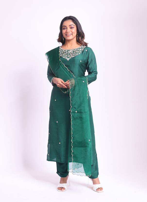 Imara Bottle Green Silk Hand Emboidered Kurta Set