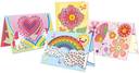 Show off your creativity and have a blast creating eight sparkling totally awesome cards. Mosaic by number and just add color, jewels, and a special message then send them out and impress all your friends! Kit includes 8 cards, 8 envelops, 1000+ sticky tiles and jewels. It's time to get creative! Express your own point of view with these cool card decorating sets. They make great birthday invitations and holiday greeting cards. Sticky Mosaic Pretty Cards come with 8 cards, 4 styles and two of each, 8 envelopes, 1400 plus sticky foam, foil and sparkle tiles and shimmering jewel stickers.