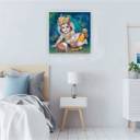 Crafted with precision and care, this frame embodies the essence of Lord Krishna's youthful charm and playfulness, radiating a sense of joy and spiritual connection. It enhances the ambiance of your sacred space and invites reflection on the principles of love, joy, and the importance of embracing the childlike innocence within us.