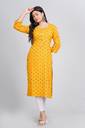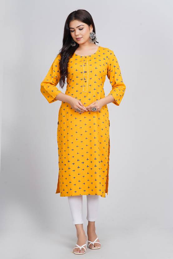 Women Printed Pure Cotton Straight Kurta (Yellow)