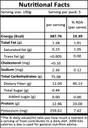 Calories 360Kcal, Fat 9g, Cholestrol 0mg, Protein 10g