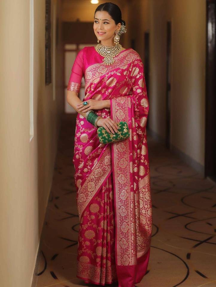 Art silk designer bollywood fashion style litchi silk saree for woman. it is made of elegant silk saree with beautiful red gold zari skirt border and pallu.saree has contrast pallu and blouse looks stunning and captivating on drape. embellished with gold zari traditional booti.a classic wardrobe collection.banarasi silk material and pure soft finished.• the saree features a beautiful flair and has a beautiful pattern around the outfit.• silverzilvira gives the garment a contemporary look and feel.sari::saree::daily wear saree::festival saree::wedding saree::high quality saree::top rating saree::woman saree::saree for a woman::paithani saree::banarasi saree::kanjivaram saree banarasi silk high quality 2500::designer saree::kanjivaram saree::banarasi cotton silk::bollywood saree::silk saree::cotton silk saree::sadi::pure silk saree::party wear saree 2024::bridal saree for wedding::banarasi sarees for wedding::kanjivaram saree high quality::pink banarasi silk saree