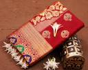 Construction Type :- Saree Fabric : Kanjivaram Pure Lichi SIlk , Blouse Fabric : Silk. Occasion :- Wedding, Party & Festive. Decorative Material :- Zari. Fabric :- Jacquard, Pure Silk. Sari Length :- 5.5m, Blouse Piece Length :- 0.8m