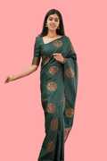 Construction Type :- Saree Fabric : Kanjivaram Pure Lichi SIlk , Blouse Fabric : Silk. Occasion :- Wedding, Party & Festive. Decorative Material :- Zari. Fabric :- Jacquard, Pure Silk. Sari Length :- 5.5m, Blouse Piece Length :- 0.8m