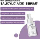 Orgello Derma 2% Salicylic Acid Serum is a lightweight daily-use formula with Salicylic Acid, Fermented Rice Water, Zinc PCA, and Hyaluronic Acid. It unclogs pores, controls excess oil, reduces acne breakouts, and refines skin texture while providing hydration. With calming Witch Hazel & Willow Bark, it keeps skin clear, smooth, and balanced. Dermatologically tested, fragrance-free, and non-comedogenic, it is safe for oily, acne-prone, and combination skin. In consumer studies, over 90% users saw reduced breakouts, smoother texture, and long-lasting oil control.