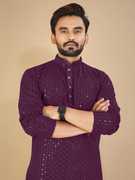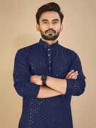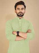 Kurta for men is made from cotton rayon fabric and Lucknowi work on it with Sequins perfect for wedding and party or festive wearing kurta for men