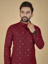Features a structured Mandarin collar and a hidden button placket for a clean, seamless look. Subtle tonal embroidery on the chest adds a touch of luxury without being over-the-top