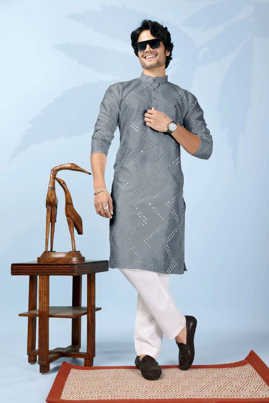 ORIFAB Men Cotton Rayon Kurta Pyjama Set