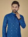 Features a structured Mandarin collar and a hidden button placket for a clean, seamless look. Subtle tonal embroidery on the chest adds a touch of luxury without being over-the-top