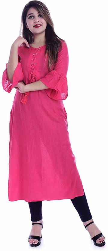 Orio Women Solid Viscose Rayon A-line Kurta (Pink)