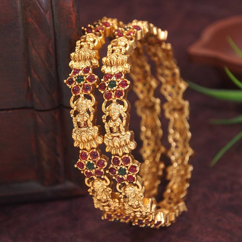 South Indian Classic Antique Lakshmi Design Gold Bangles for Women Traditional Temple Jewelry