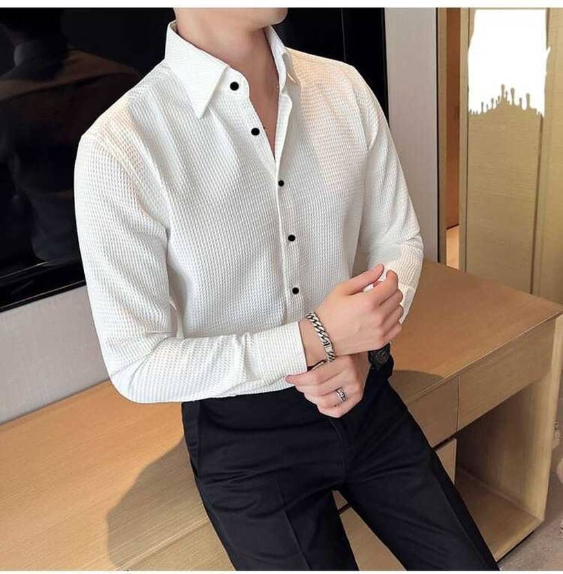 TUSHREE FASHION Men Self Design Casual White Shirt
