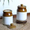 Orolinks Ceramic Pickle Jar - 800 ml, 800 ml (Pack of 2, Brown, White)