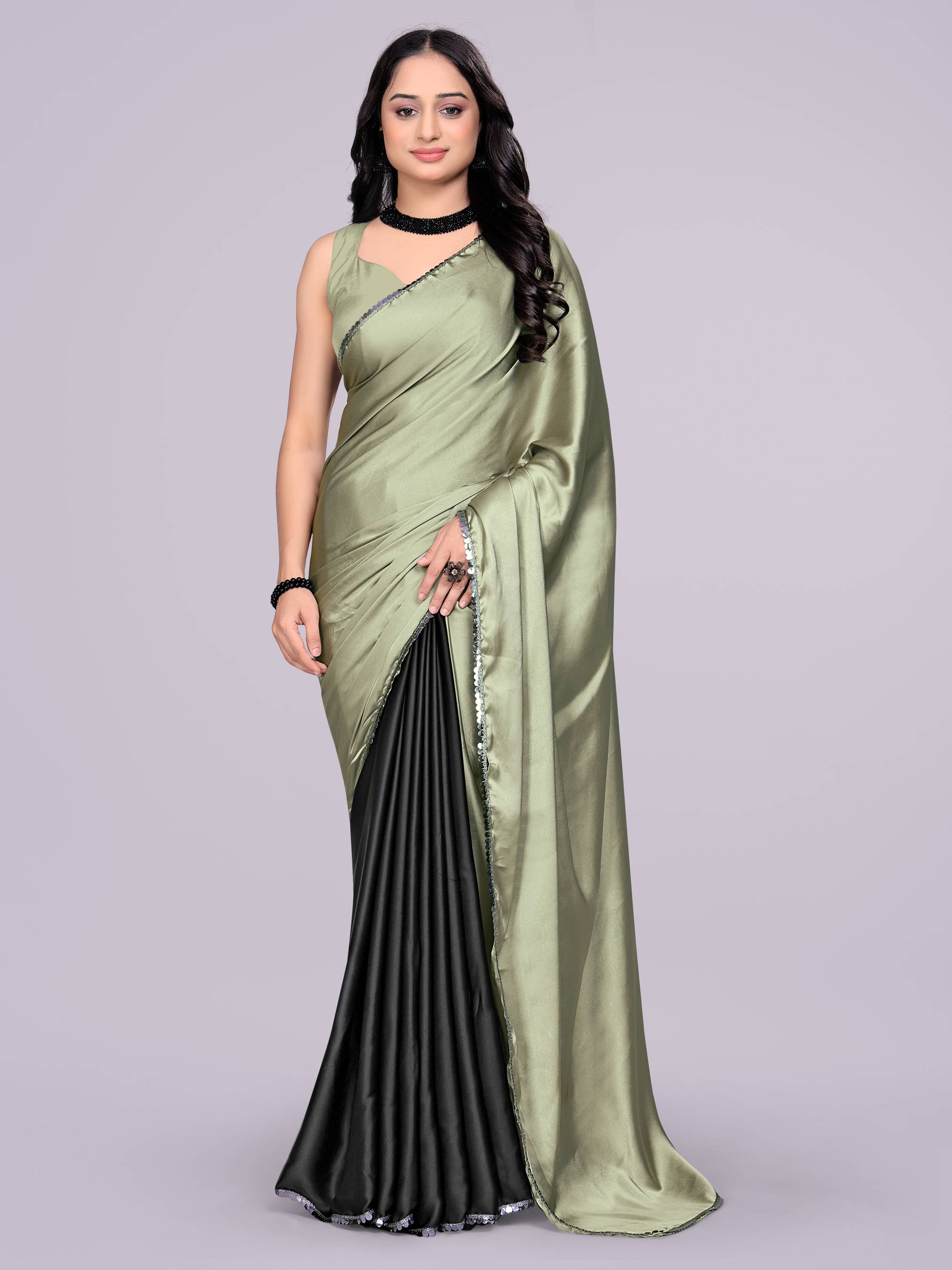 ORRASHI Solid/Plain Bollywood Satin Saree (Grey)
