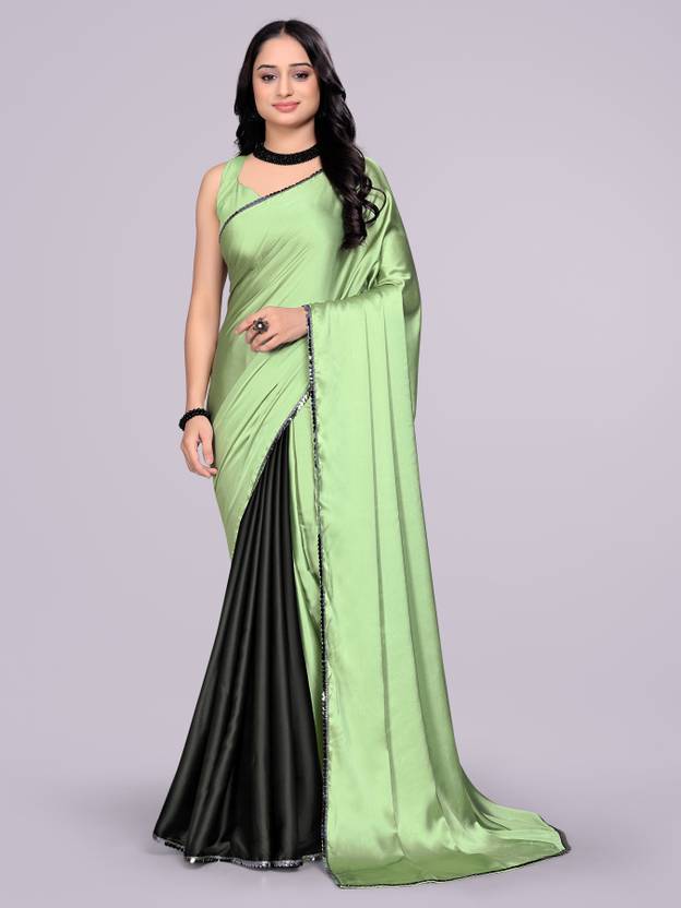 ORRASHI Solid/Plain Bollywood Satin Saree (Green)