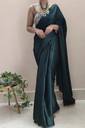 Solid/Plain Bollywood Satin Saree (Dark Green)