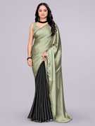 The saree in the image is an elegant and stylish with a soft, shiny finish that gives it a luxurious appeal. adding a graceful and festive touch. The saree has a embellished with multicolored beadwork or embroidery, enhancing its refined look.