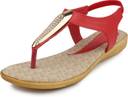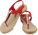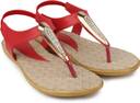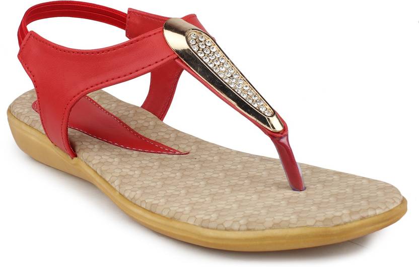 Women Flats Sandal (Red, Beige , 9 UK/India)