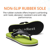 Boasting orthotic insoles in each slipper, these flip-flops deliver enhanced support and comfort. The anti-microbial fabric and foam work to keep your feet fresh and odour-free throughout the day, preventing any build-up of bacteria or moisture. The insoles also feature an anti-skid sole that improves stability, while helping to maintain proper foot alignment.