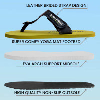 Courtesy of the leather braided strap design and fantastic comfy yoga mat footbed, these flip-flops combine both style and functionality. The yoga mat footbed ensures a cushioned feel that makes every step feel like a cloud. The EVA arch support midsole offers stability and helps with foot alignment, improving overall comfort. With a high-quality non-slip outsole, these flip-flops offer secure traction with every step, allowing you to walk with confidence.