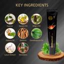 | Ingredients | - Ajwain Oil (Carum copticum), Dalchini (Cinnamomum zeylanicum), Dashamool Oil, Devadaru (Cedrus deodara), Gandhapura Oil (Wintergreen) (Gaultheria fragrantissima), Kapoor (Cinnamomum camphora), Lasun Extract (Allium sativum), Lal Mirch Oil (Capcicum annum), Lemon Grass (Hari Chaay), Mahanarayan Oil, Mahavishgarbh Oil, Malkangni Oil (Celastrus paniculata), Pudina (Mentha arvensis), Methi (Trigonella foenum-gracum), Nilgiri Oil (Eucalyptus globulus), Nirgundi (Vitex negundo), Rajika Oil (Brassica juncea), Shallaki (Boswellia serrata), Turpentine (Pinus longifolia), Hadjod Oil (Cissus quadrangularis)
