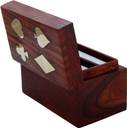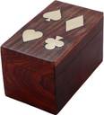 BEAUTIFUL HANDMADE PLAYING CARD CASE: This is wooden playing holder for 2 decks of cards. This classic design card guard protects your playing cards to keep them in mint condition and helps prevent cards from spilling bending, warping & tearing. PERFECT SIZE PLAYING CARD BOX - This wooden box card case measures 5 (l) x 3 (b) x 3 (h) inches. This beautiful box is big enough to store vintage cards, collectible cards, poker cards, trading card, magic cards, tarot card and many more. PERFECT STORAGE CARD HOLDER: Interior of the box holds two decks of card comfortably. The box is large enough to hold two full decks of bridge, poker or standard cards and has a divider down the middle. The box is a great storage place for your playing cards and will last a lifetime. This handsome design is a must-have for any card player and makes a great box for poker players, bridge players and anyone else who enjoys the fun of a game of cards. ARTISAN HANDCRAFTED WOODEN BOX: The box is fashioned out of Indian hardwood, making it light in weight but maximally durable This Card Storage Box is a wooden handicraft produced with traditional techniques by North Indian artisans. A great level of skill and attention to detail goes into the construction of this playing card storage box, ensuring that it is of impressive quality and built to last a lifetime. GREAT GIFT IDEA FOR ANYONE: Eye catching brass inlay hand worked with passion and attention to detail. Its high amount of decorative appeal adds to your living room or home decor while being useful too. This beautiful box can also be used to give as holiday gift, valentines day gift, mothers day gift, fathers day fight, birthday housewarming or anniversary gift idea for him or her, mother or father, girlfriend or boyfriend, grandmother or grandfather.