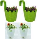 2 Green Balcony designer Fence hook plastic flower pots, 2 white self watering plastic pot