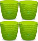 Oshi Greens Table top Designer plastic flower pot set unique design small planters office use Plant Container Set (Pack of 4, Plastic)