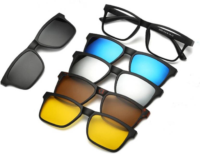 STYLISH & MULTIFUNCTIONAL - 1 x Optical frame + 5Pcs magnetic sunglasses clip. The clip-on sunglasses with strong magnetic function can suck the metal frame. Black lens is polarized lens, yellow lens is night vision lens, brown / blue / silver lens are mirrored lens. People can easily take a pair of sunglasses with different color lens to drive, fish, attend a party and a variety of outdoor activities. CAN BE REPLACED WITH OPTICAL LENS - Rx optical frame is just come with clear demo lens, you can buy and take this frame to local optical store to filling the prescription lenses, or choose and buy the prescription lens together from us. 100% UV400 PROTECTION - All of clip ons are UV400 protection lens. Lenses filters 100% of all UVA, UVB, UVC and harmful blue light up to 400nm. UV 400 are essential to protect your eyes against long-term UV damage and keep your eyes healthy while going out.