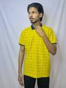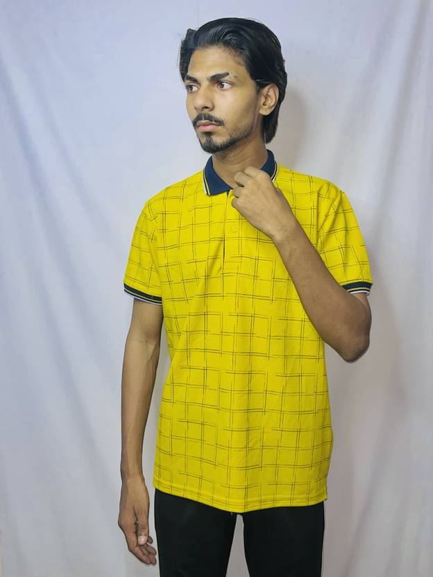 Men Checkered Polo Neck Cotton Blend Gold T-Shirt