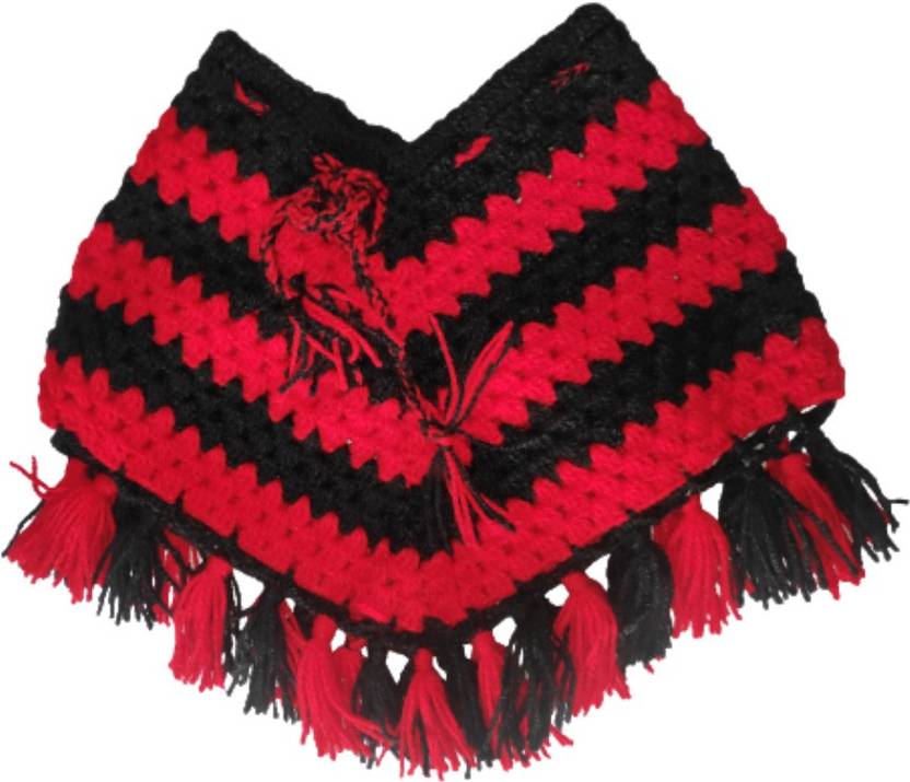 Baby Girls Casual Poncho Poncho (RED, BLACK)