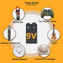 A nine-volt battery, either disposable or rechargeable, is usually used in smoke alarms, smoke detectors, walkie-talkies, transistor radios, test and instrumentation devices, medical batteries, LCD displays, and other small portable appliances