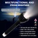 energy-saving, bright and long-life led bulbs are adopted,strong and jmall light brightness are adjustable,inside is equipped with 2400 mah long-life and maintenance-less rechargeable battery.long range flashlight torch.no batteries required just plug - in to re-charge(220 V)power supply. Material: Aluminium , Color: Black. Good battery capacity,high tech-super led bulbs ,very long life,excellent design,superior quality Good. Water resistant, Energy-saving, ultra bright , long-life super bright LED bulbs are adopted With Fast Charging Battery. Lighting distance: 900 meters. High quality T6063-T6 metal alloy. Extensive Lifetime of LED (100,000 hours). The switch ways: Push button switch. LED: CREE Q5 LED. Max output: 1800 lumen. Power: 50W. Brightness: 2000 lumen. Model of Battery: 1 PCS AX18650 2400mAh Li-ion battery. Up to 10 hours runtime. 4 Modes: High, Low, SOS, Table Lmp. Widely used techomania in our lives, camping, climbing, cycling, traveling, etc. Portable, smart and extremely cool appearance, with clip bring you convenience. Color: As per image. Length: 27cm. Breadth: 7cm. Hight: 2.5cm. Color-Black. In The Box :: 1 PCS 2000Lm Flashlight & Lamp Light,