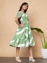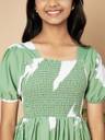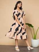 Elevate your style with this stunning smock dress featuring a vibrant abstract print in shades of Multicoloured. The lightweight and breathable fabric ensures comfort, while the off-shoulder design and ruffled tiers add a touch of femininity. Perfect for warm weather, this dress can be dressed up or down, making it a versatile addition to your wardrobe. Crafted with attention to detail, this piece is sure to turn heads wherever you go. Pair it with sandals or heels for a chic and effortless look. Please note that the dress is designed for a relaxed fit, so consider sizing down for a more fitted silhouette. Embrace the season's trend with this eye-catching smock dress.