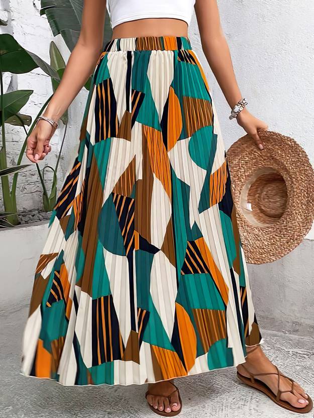 Women Printed A-line Multicolor Skirt