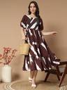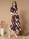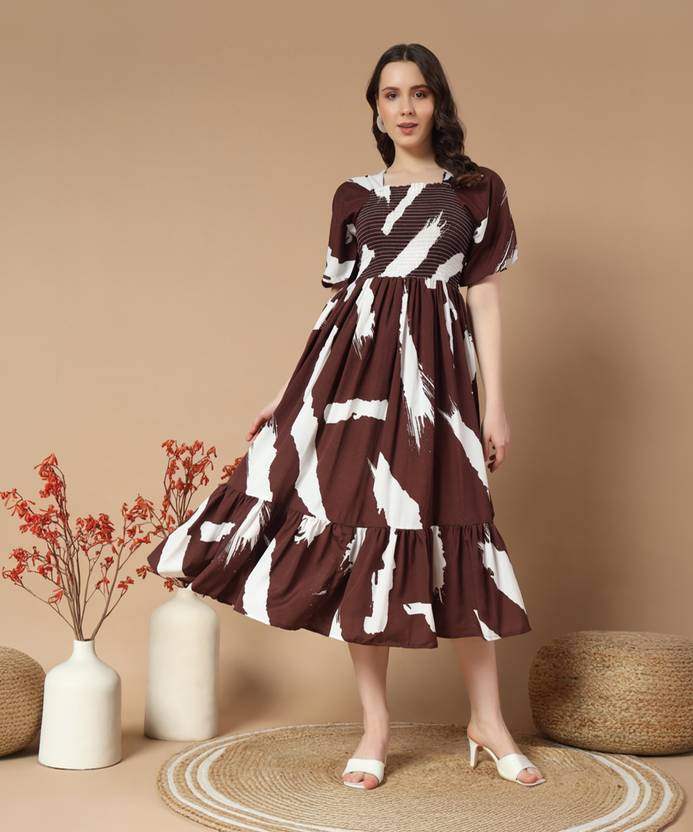 OTABU Women A-line Brown Midi/Calf Length Dress