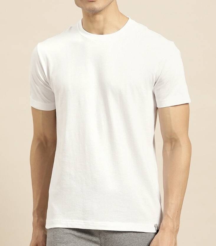 Men Solid Round Neck Pure Cotton White T-Shirt