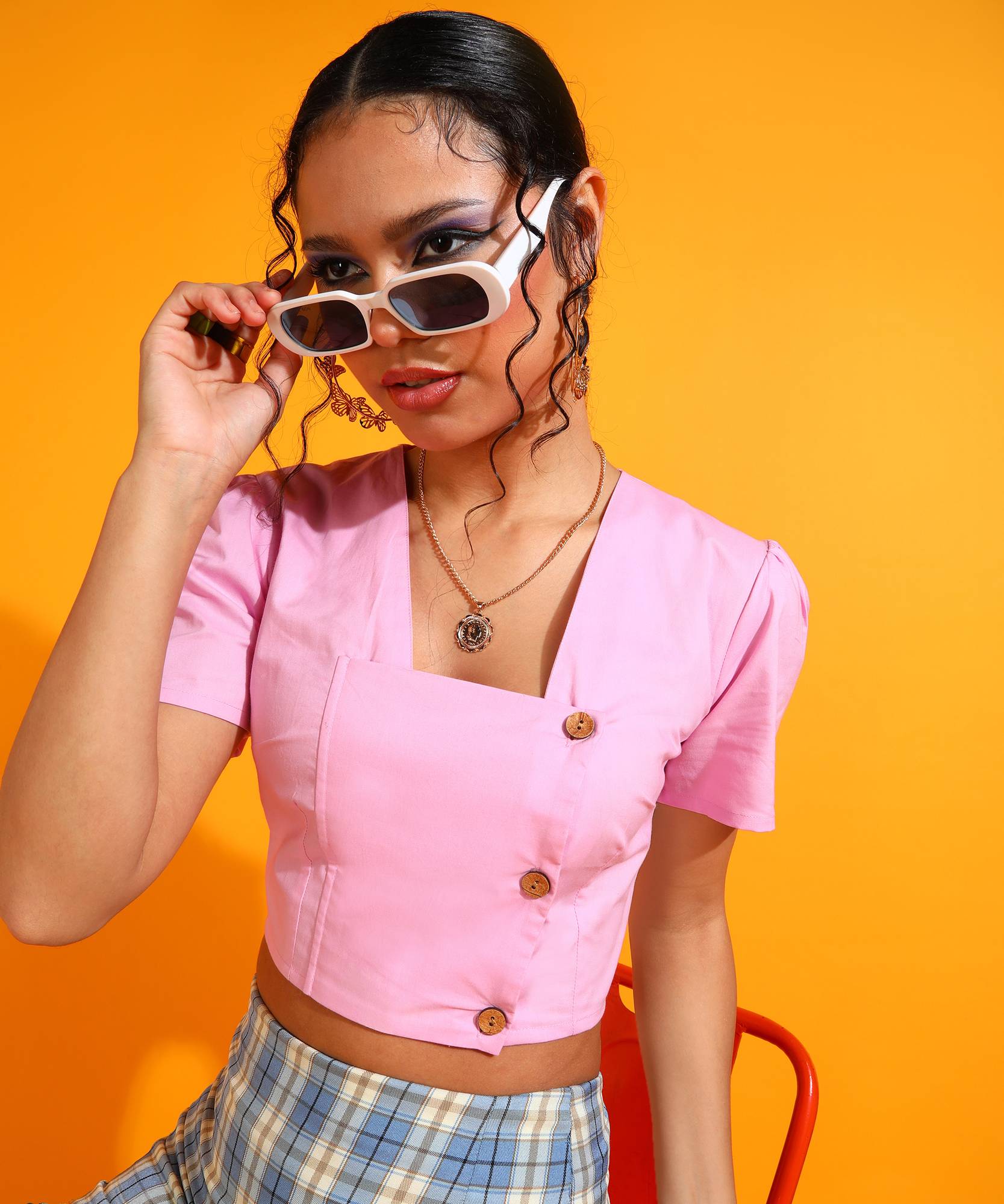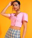 OTTAVIA Party Solid Women Pink Top This OTTAVIA top is a charming choice for party wear, designed in a vibrant solid pink color. The rich, feminine hue makes a confident and cheerful statement. It's an easy-to-style piece for a fun, polished ensemble.