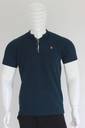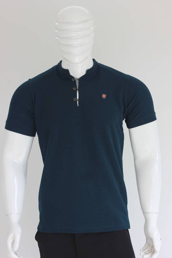 Men Solid Mandarin Collar Cotton Blend Blue T-Shirt