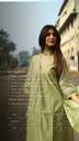 Crafted in Sage Green Chanderi Silk, the kurta is lined with a silk blend, giving it a graceful & structured silhouette. It is paired with Pure Viscose Farshi Trousers, detailed with delicate lace, and a Chiffon Embroidered Dupatta, completing this elegant ensemble.