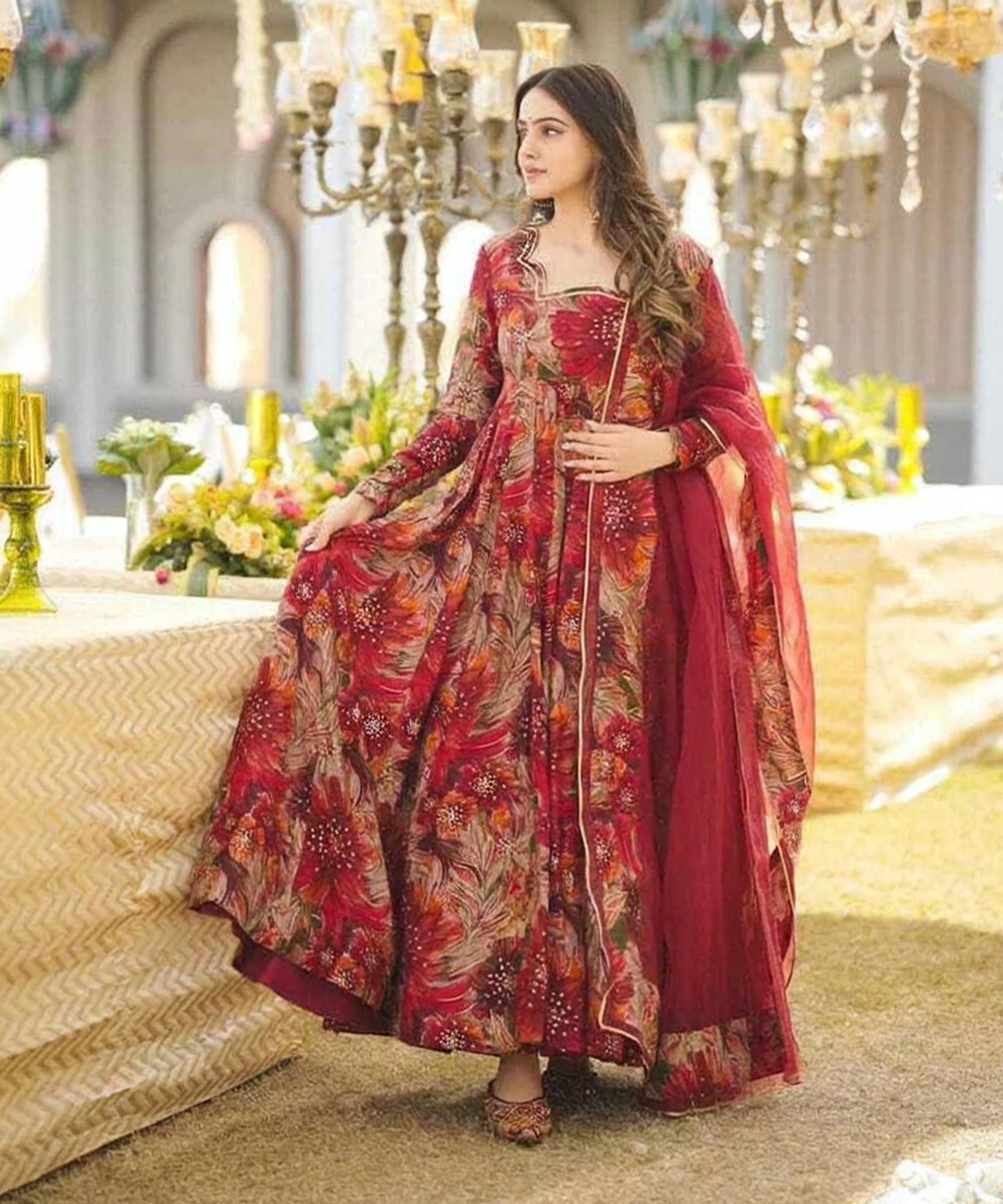 Perfect for festive celebrations, weddings, or evening gatherings, this Anarkali set is crafted from premium-quality fabric to provide all-day comfort and style. Pair it with statement earrings and ethnic footwear to make a lasting impression.