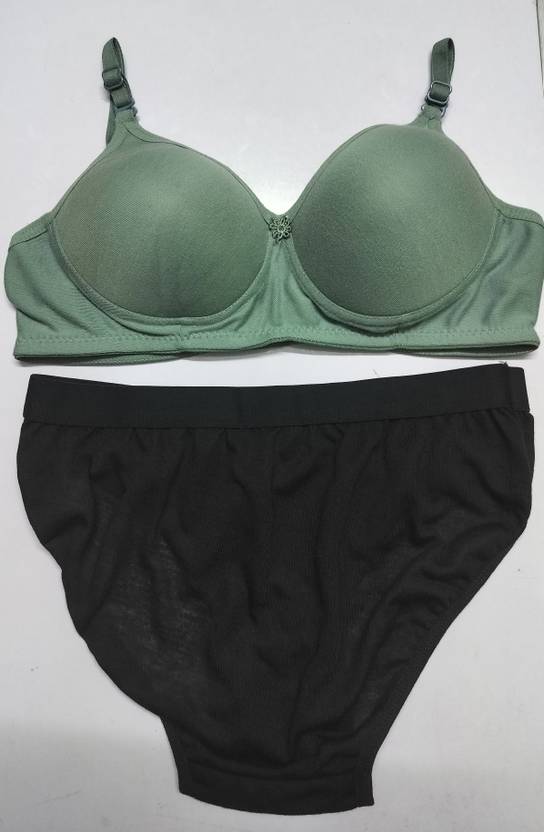 Oumar Bibi Bra & Panty Set Self Design Light Green Lingerie Set