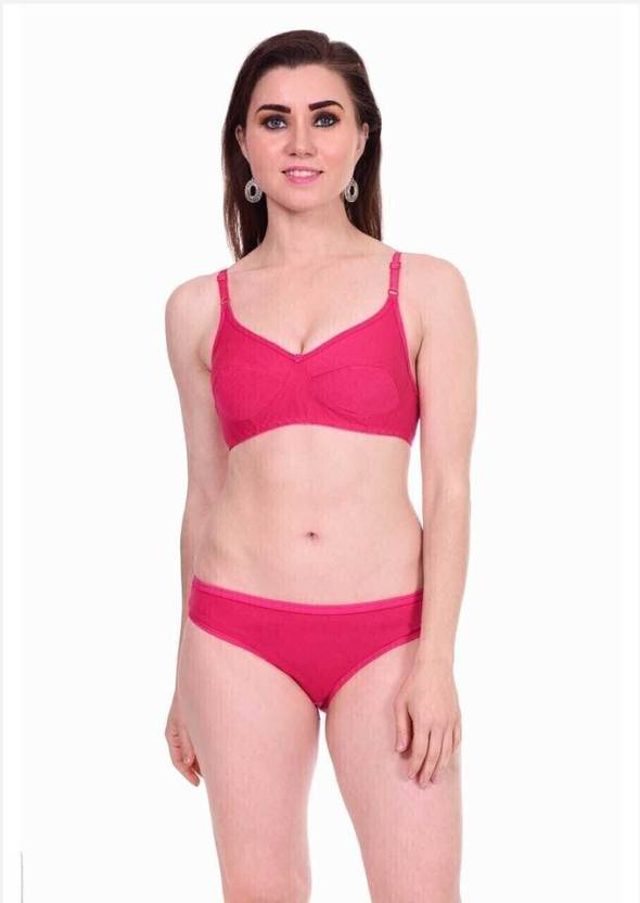 Oumar Bibi Bra & Panty Set Solid Pink Lingerie Set